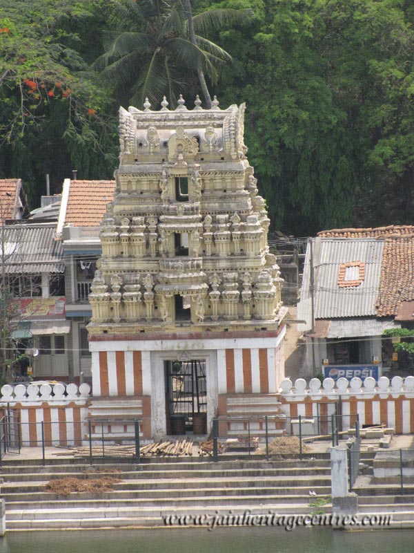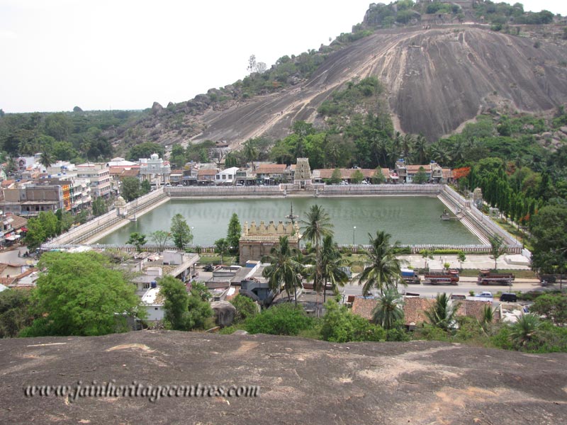 On the way to Indragiri hill at Shravanabelagola from the vidyananda Yatri Nivas, the first structure that meets the eye of the visitor is the beautiful pond or Kalyani. This is a large beautiful pond situated at the centre of the town. It has steps on all sides and surrounded by a wall with gates surmounted by towers. It was built by Annaiah the officer of Kammata (mint) but he died before its completion. Later his grandson Krishnawodeyar-I completed the gopura, the tank and corridor as mentioned in Anathakavi’s Gommateshwara Charite. In the course of years the construction was also taken over by Chikkadevarajendra Wodeyar, the king who ruled Mysore state from A.D. 1672-1704 and was completed in A.D. 1723 in his memory as he died during the period of its construction.