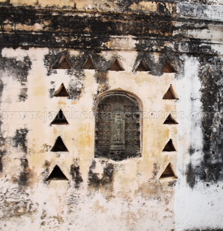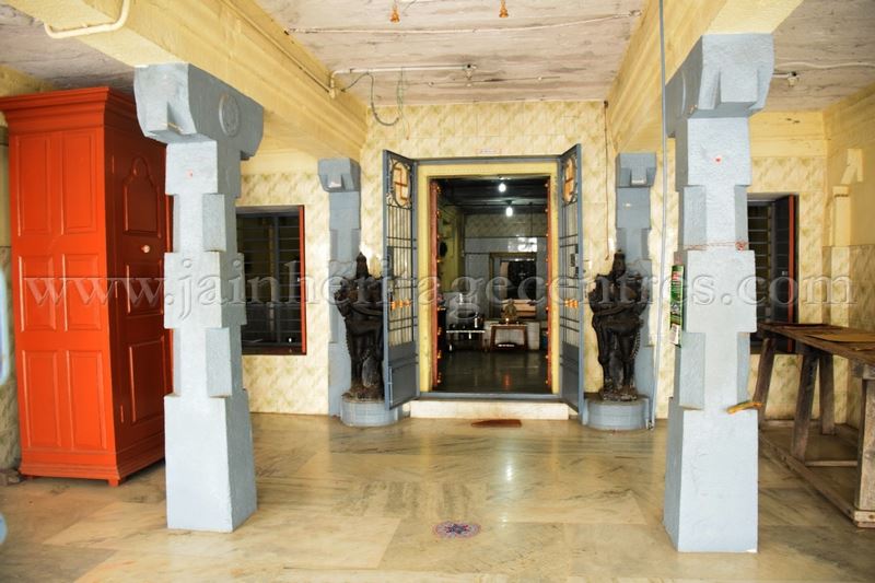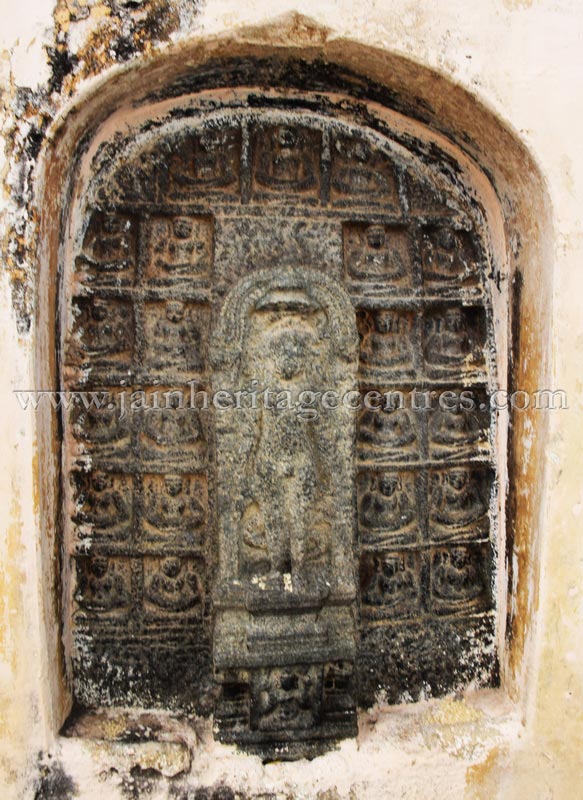 On the right side compound walls facing the temple are embedded the stone idols of chaturvimshati Tirthankar & Shrutaskanda. On the left side compound wall is also embedded a stone idol of chaturvimshati Tirthankar. Further to the left of the temple adjascent to the main entrance is found the chandrashale.