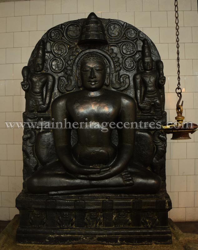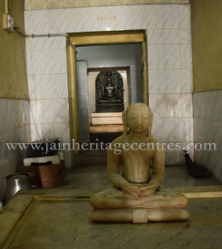 Main Deity : About 3 feet high black coloured idol of Lord Adinath in padmasana.