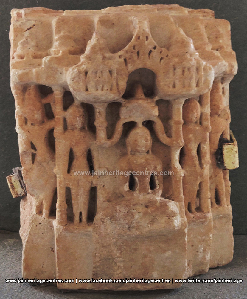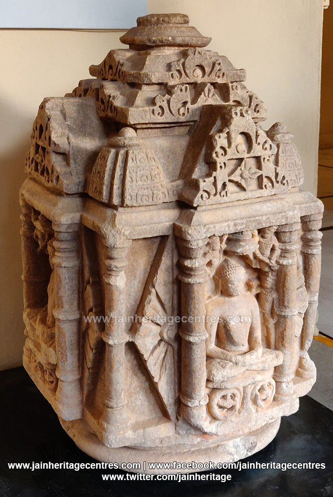 Chaturmukha Jain Tirthankara idol with Tirthankara seated in Padmasana, 10th- 11th Century.