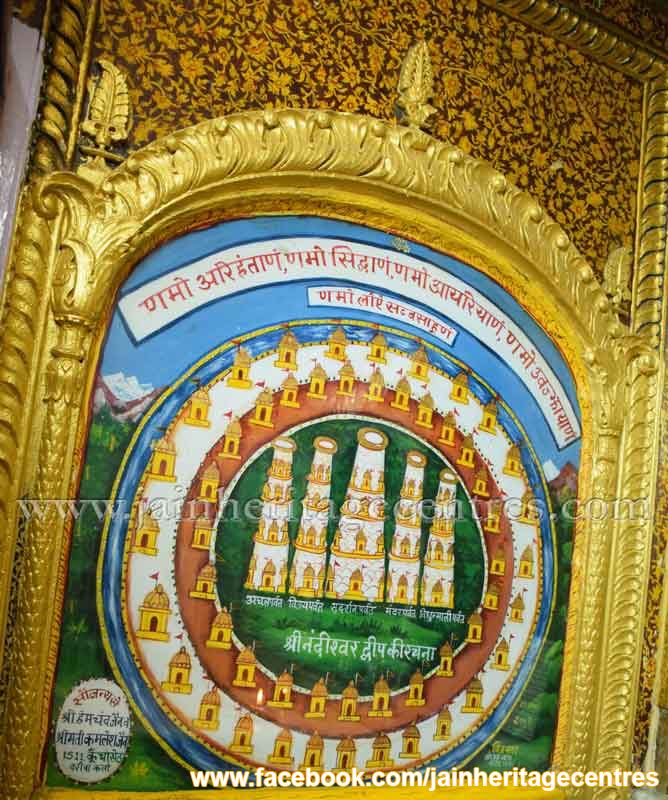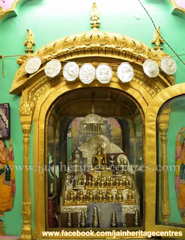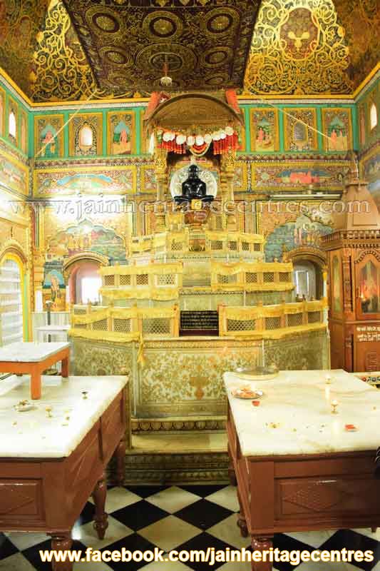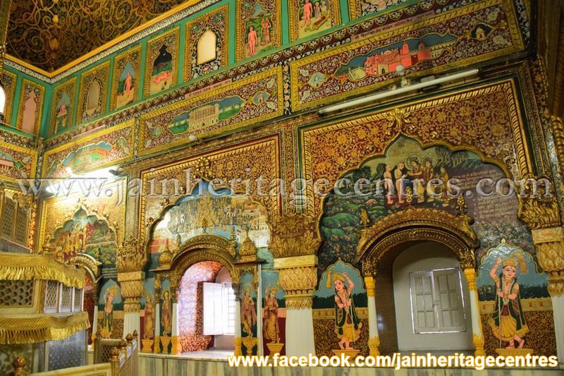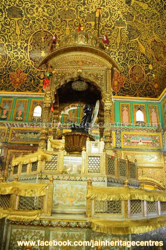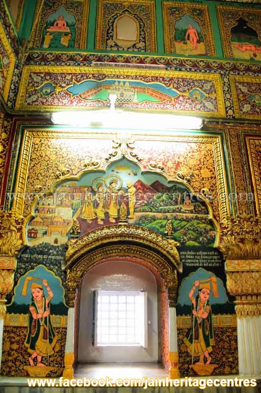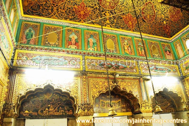 Gold Art Wall Paintings – The temple has elaborate wall paintings dating back to early 1800’s. The wall paintings are related to various aspects of Jainism and are of Gold art. The different paintings found in this temple are as below –