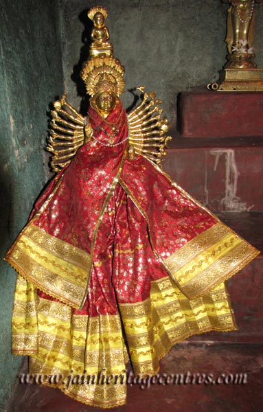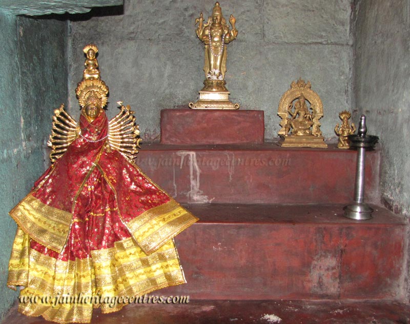 Relief from Kalasarpa Dosha – Kanakagiri is the only place among the Jain centres providing relief to the ill effects of Rahu & Ketu as described in the Jaina heritage i.e. Kalasarpadosha. It is also mentioned in the Jaina classics. It is interesting to note that the idols of Sri Amra Kushmandini, Sri Nagadevate and Sri Padmavathi Goddesses are placed opposite to each other. These bring peace and tranquility amongst the devotees. The Jains and also non Jains visit the place seeking relief from Rahu Ketu dosha. Queen Deverammanni of Mysore royal family once suffered with Kalasarpadosha and found relief on worshipping the Goddesses here. Hence she bestowed the place with the idol of hood of snake bearing Dharanendra and Padmavathi figures. This idol is found only here and nowhere else in any part of the world.